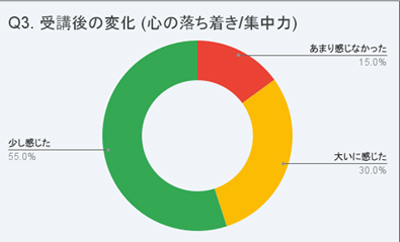 受講後は、「今ここ」に意識を向けるようになり、業務や日常生活における集中力の向上につながっていると感じています。