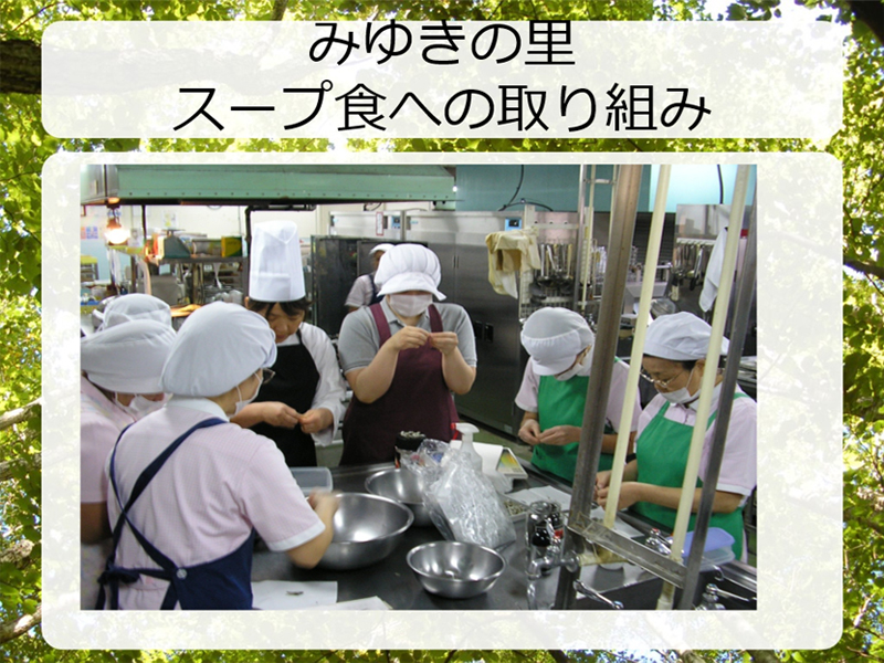 大量調理用の命を支えるスープ食のマニュアルを作成頂き、各施設にて整備