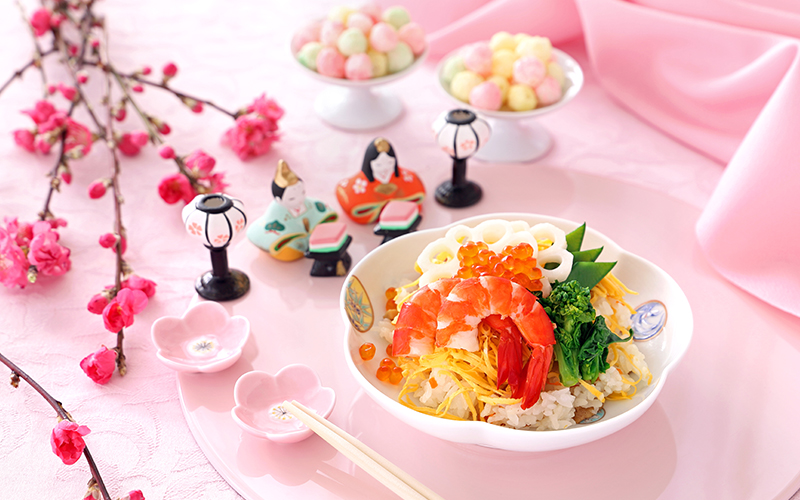 ひな祭りの食卓を飾るちらし寿司には、長寿を象徴する海老や、先を見通す蓮根など、縁起の良い具材がふんだんに使われています。その華やかな彩りは、冬を越えて春に咲く花々のようでもあります。家庭で作る際は、菜の花や絹さやを添えるのがおすすめです。鮮やかな緑が加わることで季節感が増し、素材の味を活かした料理は家族の心も温めてくれます。