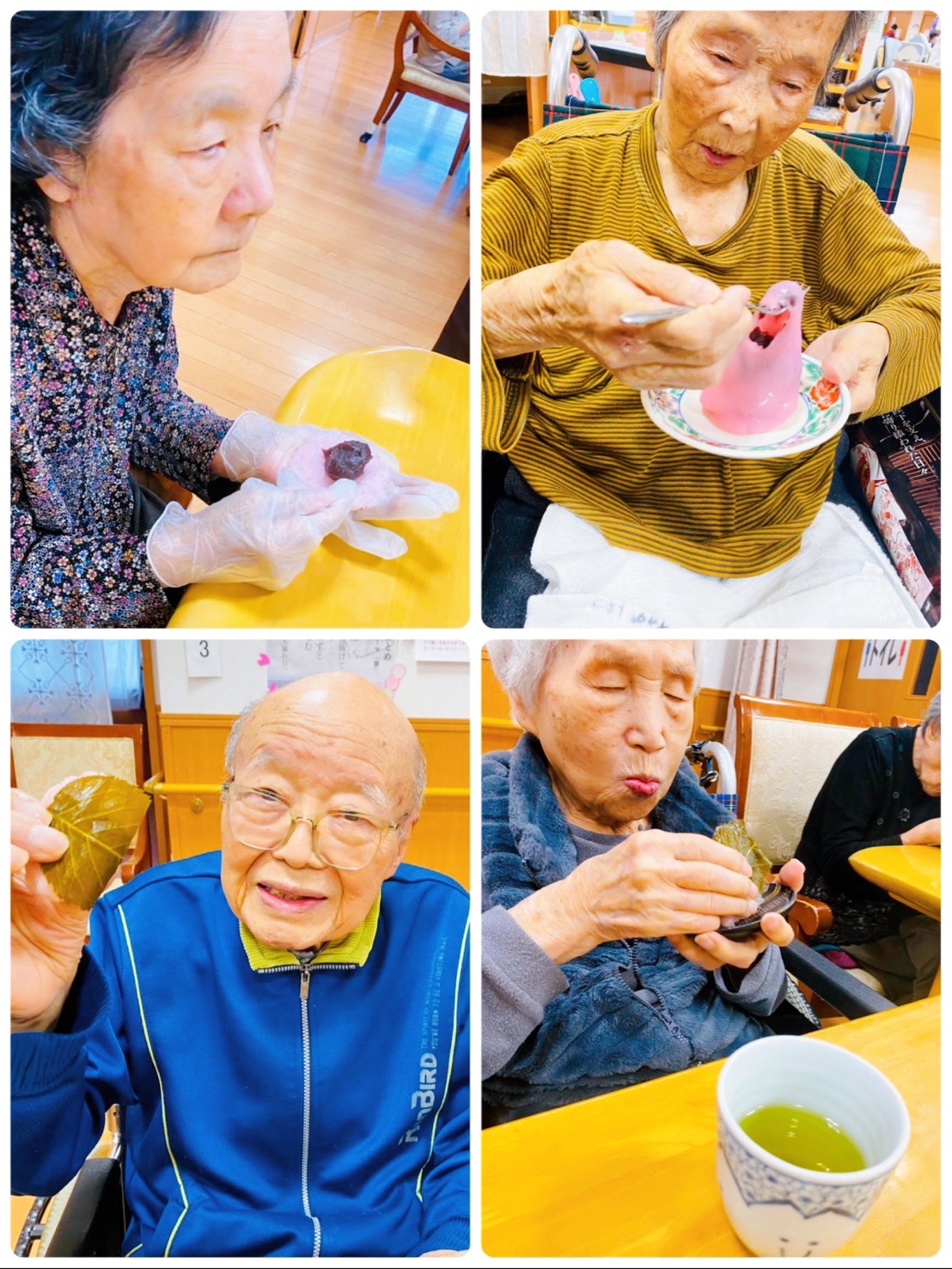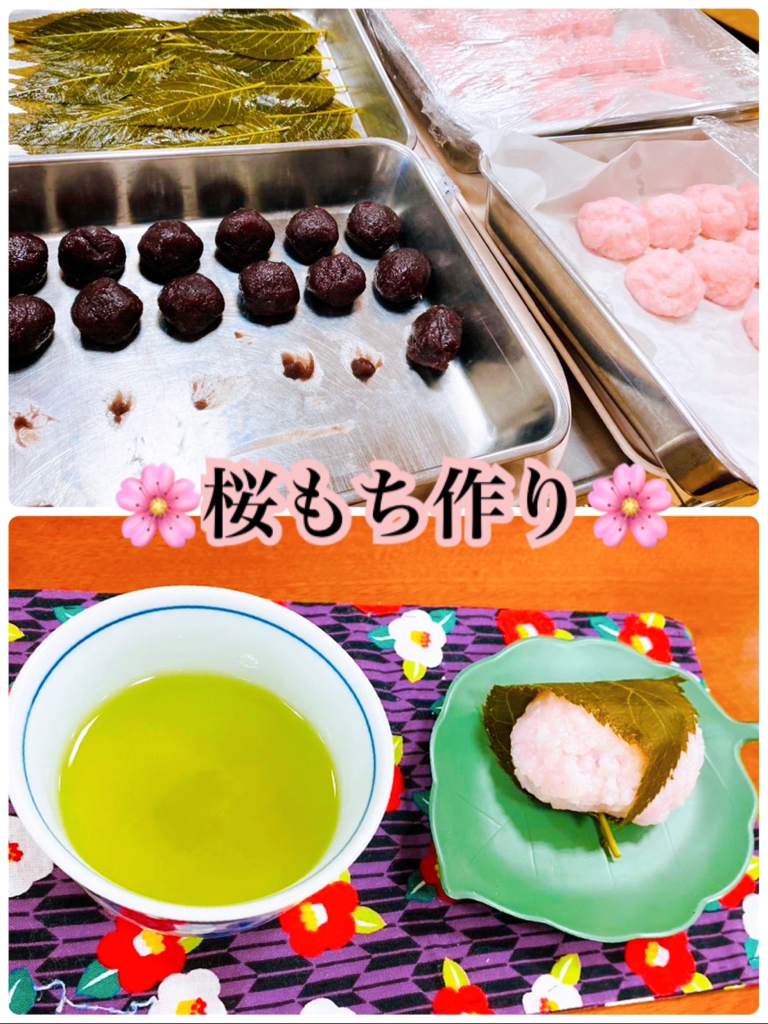 お茶との相性抜群ですよね😝♬手作り桜もち大変好評で楽しいおやつタイムでした😍次回も楽しみですっ!!