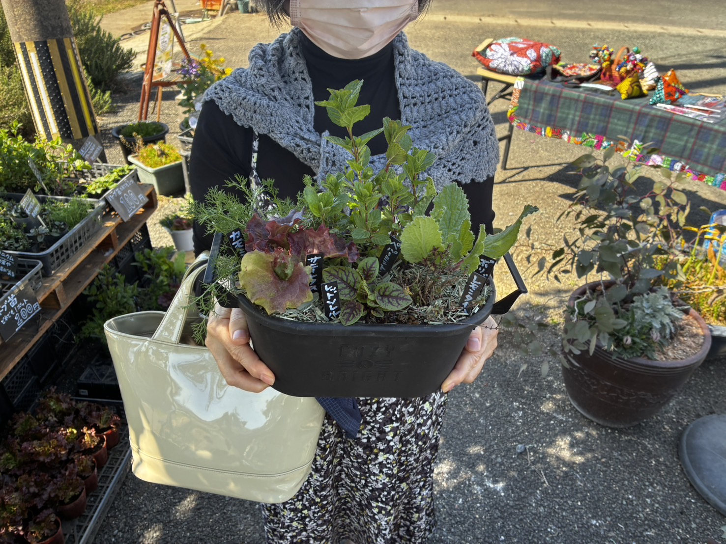 健康ファームも新鮮なお野菜やお花・お野菜・ハーブの苗を販売しておりました。