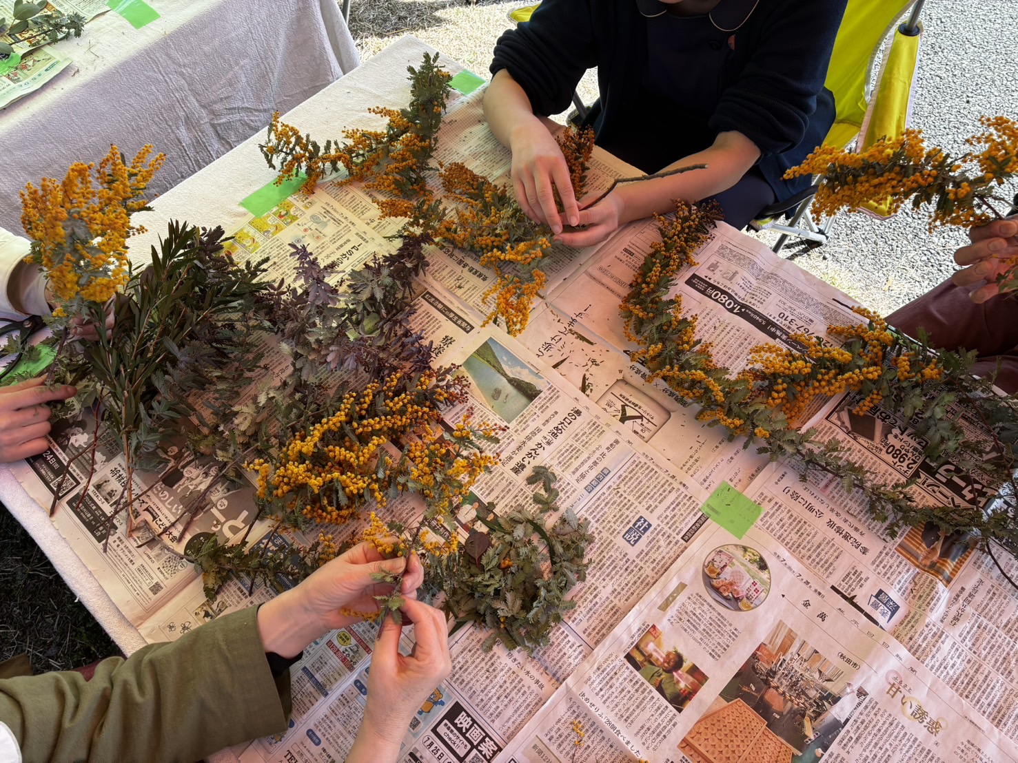 今回マルシェではそのミモザを用いたスワッグ作りを行いました!