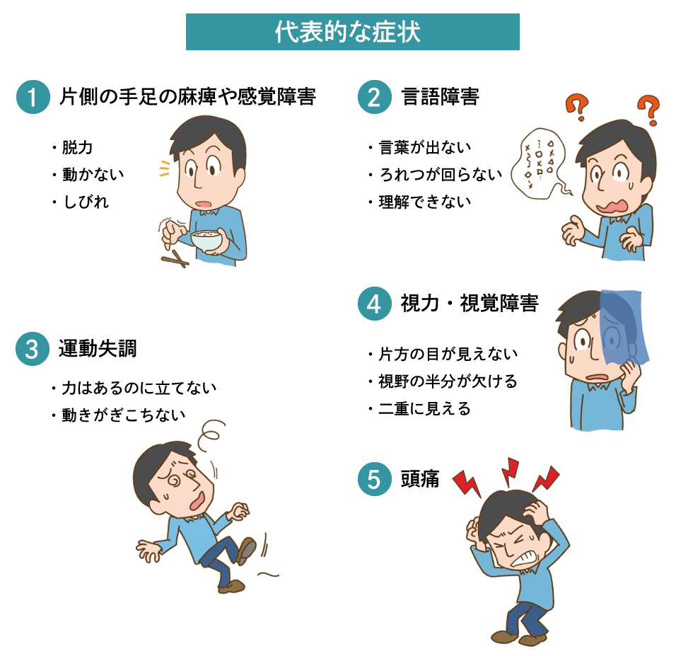 ただし、出血が少量であったり、脳梗塞の場合は、頭痛がそれほどひどくなかったり、頭痛がなく、手足や言葉の症状だけがでることもあります。