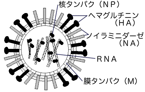 「HA:ヘマグルチニン」と、「NA:ノイラミニダーゼ」って場所です。