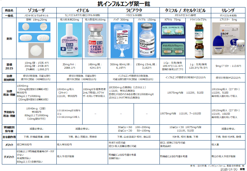 さて、抗インフルエンザ薬について大まかにまとめてみました。2026年1月現在、2月以降に流行るのかどうなるのか分かりませんが、今後の為に基本的な部分だけでも理解しておくのは大事だと思いますので最後に一覧表を付けておきます。