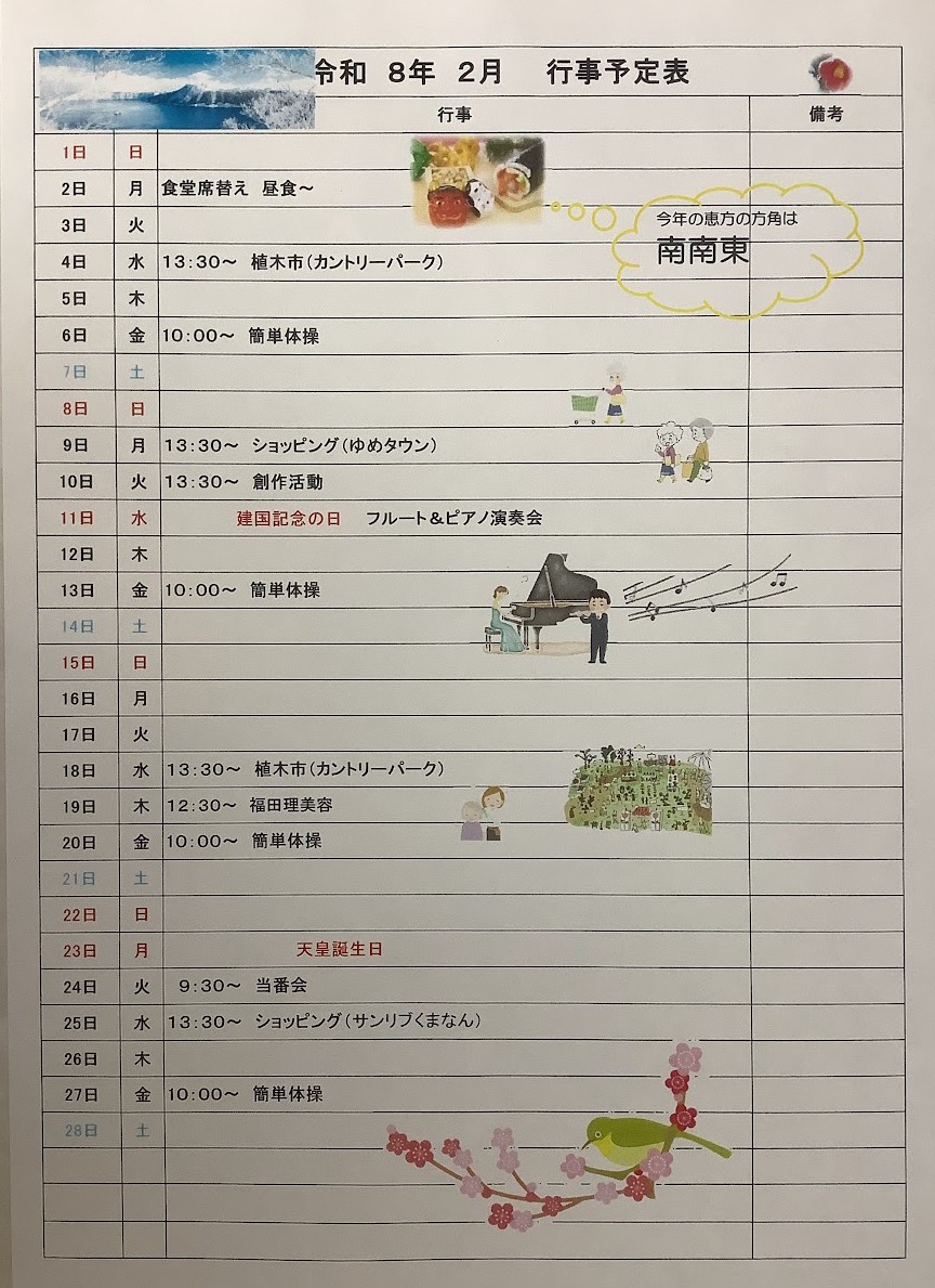 2月も入居者の皆様と、楽しい日々を送れますように。。。