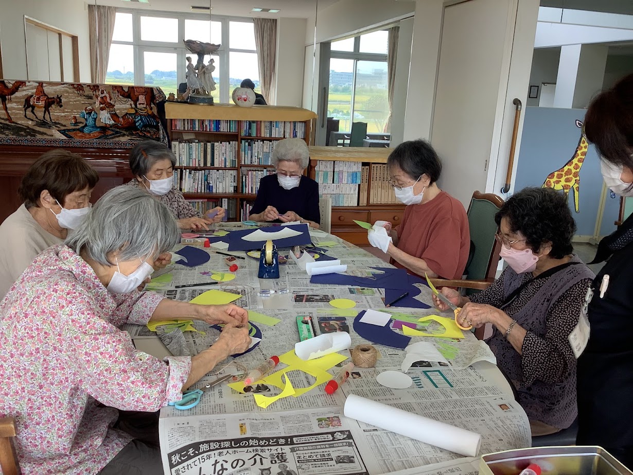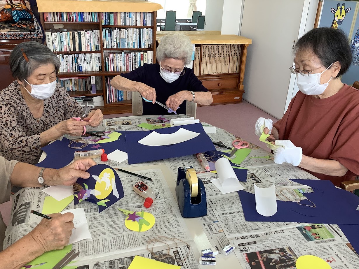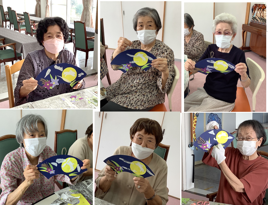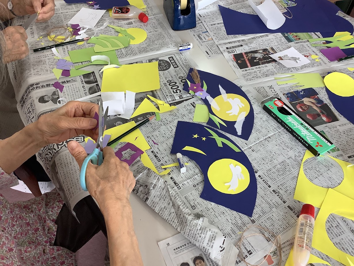 お月様のうさぎやお花、すすき。。。すべて作りました。