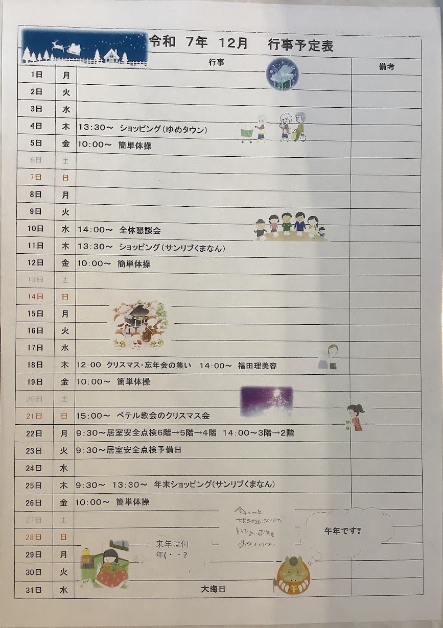 来月は、クリスマス会や忘年会とお楽しみも沢山です。